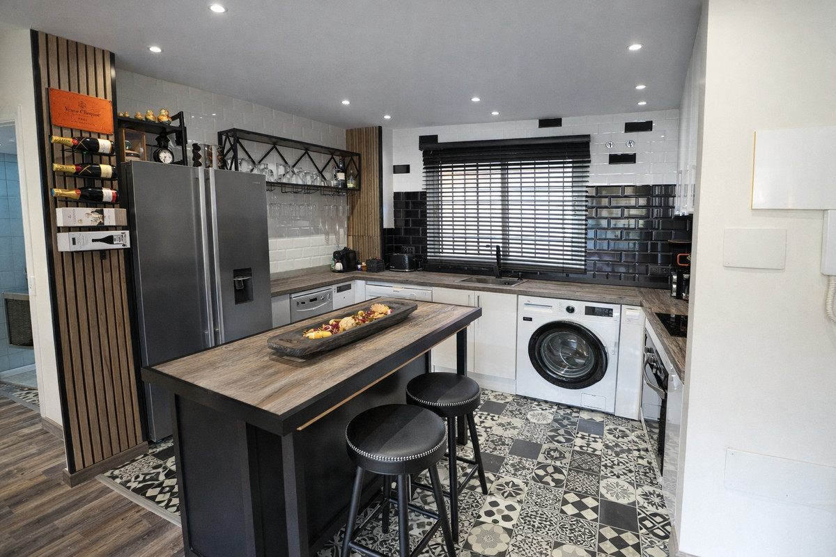 The interior of the apartment is thoughtfully designed, featuring a spacious living room and a dedicated dining area, both furnished to a high standard. The fully fitted and equipped kitchen caters to culinary enthusiasts, while air conditioning and central heating ensure year-round comfort. Fitted wardrobes provide ample storage, and the overall layout maximises both functionality and elegance.
