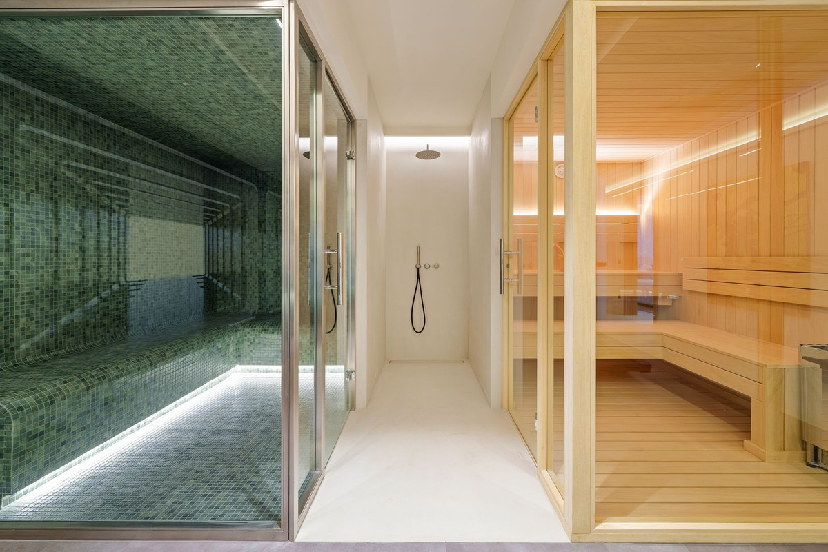 For wellness and leisure, the lower level includes a fully equipped gym, complete with a sauna and steam room enclosed in glass, and ample space for exercise and relaxation. A secure garage and refined entryway add convenience and privacy to this exceptional residence. Designed for contemporary coastal living, this villa offers refined style and every modern comfort in a prime location.