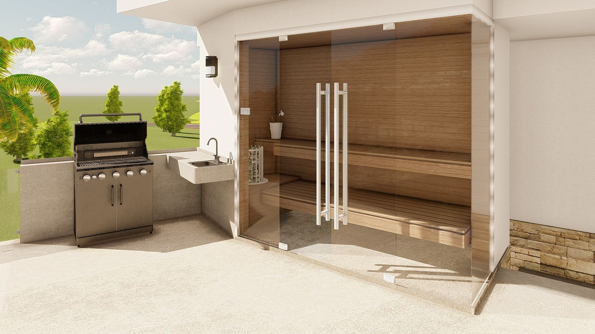 With a barbecue area with a fully equipped kitchen, this villa offers a versatile space that can be adapted to your preferences. The spacious entrance allows parking for up to five cars, or the option to convert part of the space into a private gym. In addition, there is the possibility of incorporating up to five or six bathrooms, tailored to the individual needs of each owner.