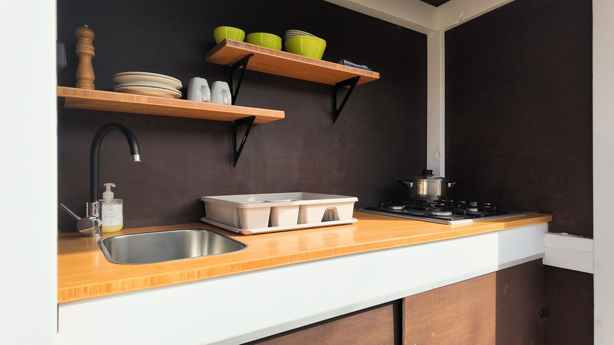 Each of the 4 guest houses is designed to be entirely self-sufficient, featuring its own private bathroom to ensure maximum comfort and privacy. Two of the residences are equipped with their own private kitchens for those seeking a more private and quiet, independent stay, while the remaining two units are to utilize the expansive kitchen facilities of the guest pavilion..