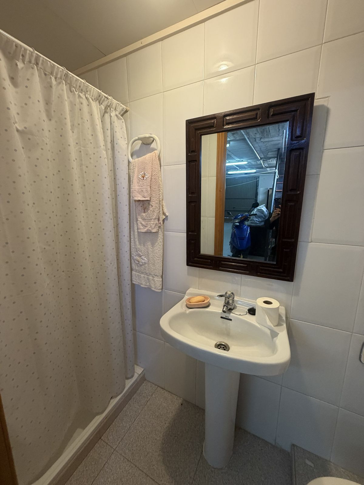 The garage is covered and private, with space for 3 cars, motorcycles, bicycles, etc.