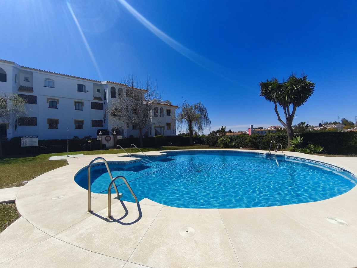 This is a lovely 2 bedroom 1 bathroom apartment within a small gated complex of apartments with community gardens and a swimming pool, ideally situated just 450 metres from all the amenities and sandy beaches of Riviera del Sol, Mijas Costa. R11 Sports Club is just across the road with cafeteria, padel, tennis courts and gym. Max Beach restaurant and pool beach club is an easy 5 minutes walk away. This apartment is really about location!