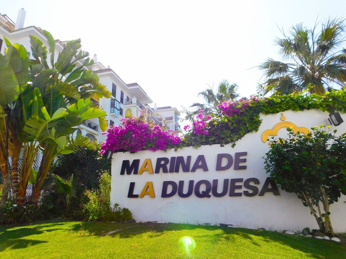 French doors from the living room leads to a covered terrace, perfect for dining in the shade. This terrace leads to a secure community garden and looks onto one of the community pools. The community gardens are well maintained and there is a selection of 4 swimming pools. There are also 2 community Padel Courts. Marina de la Duquesa is a secure, gated community. There is direct access from the community onto the promenade and the beautiful sandy beach. Duquesa Marina is just a 2 minute walk away. This apartment also has an invaluable private underground parking space and a secure private store room.