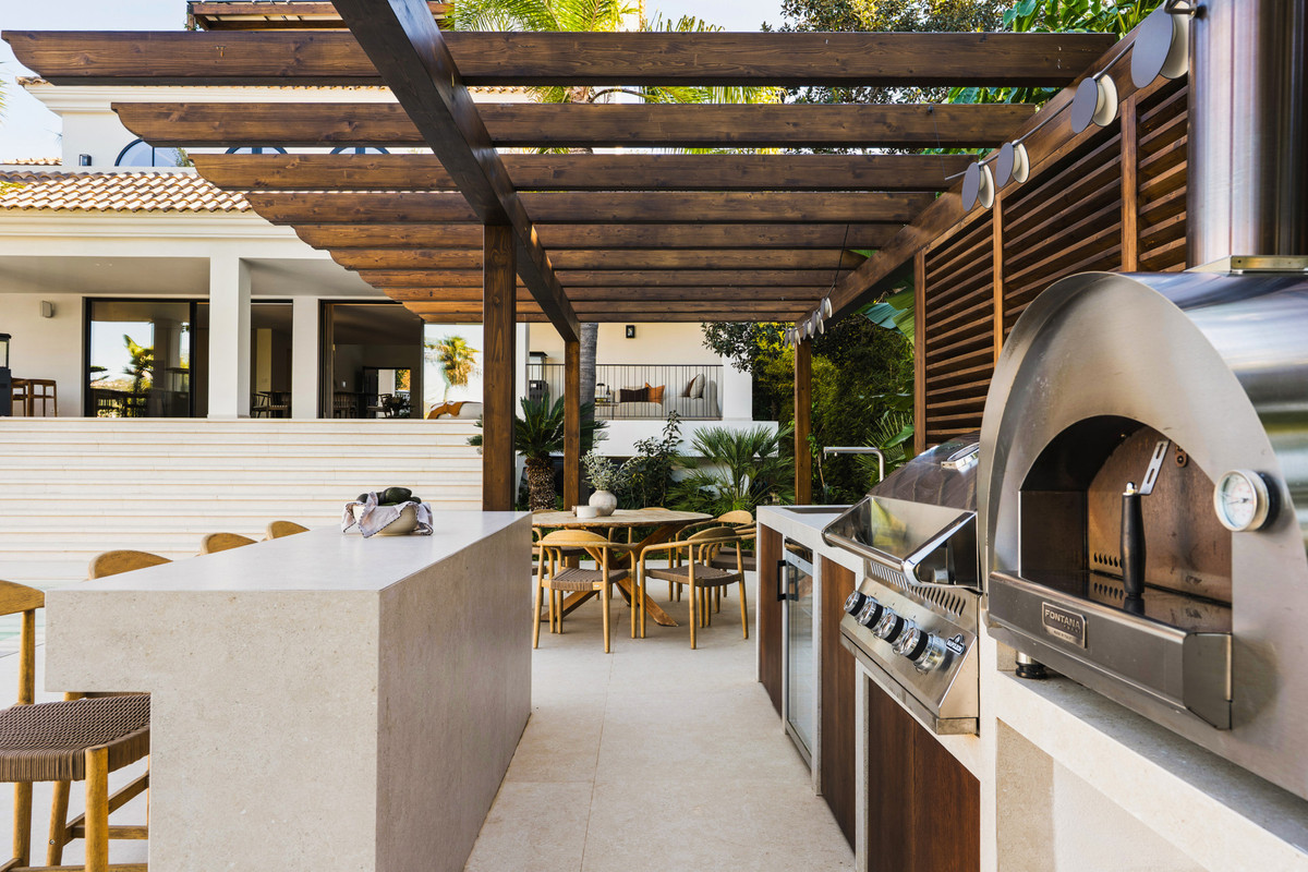 The outdoor areas have been designed to embrace a true indoor-outdoor lifestyle. An elegant outdoor kitchen and bar area accompanying a magnificent heated saltwater swimming pool, complete with a mirrored overflow edge that creates a striking visual effect.