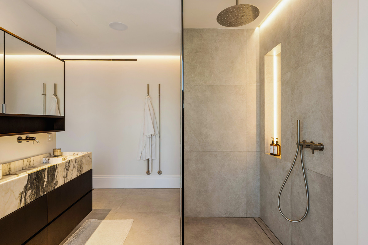 The kitchen is fitted with top of the line Miele appliances and complemented by a stylish dry bar. A separate, concealed chef’s kitchen/scullery provides a highly practical extension, ideal for hosting and preparing meals while maintaining the elegance of the main living space.