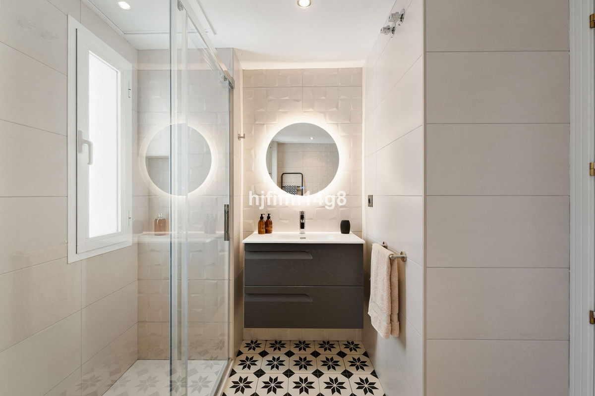 Inside, the home features a fully equipped kitchen with a separate utility room, opening onto a spacious living area complete with a cosy fireplace and direct access to a private terrace, perfect for relaxing or entertaining. The main floor also houses a generously sized bedroom with built-in wardrobes and a renovated bathroom. Upstairs, the roof terrace offers stunning views of Marbella’s iconic La Concha mountain, ideal for enjoying the sunshine or evening gatherings.
