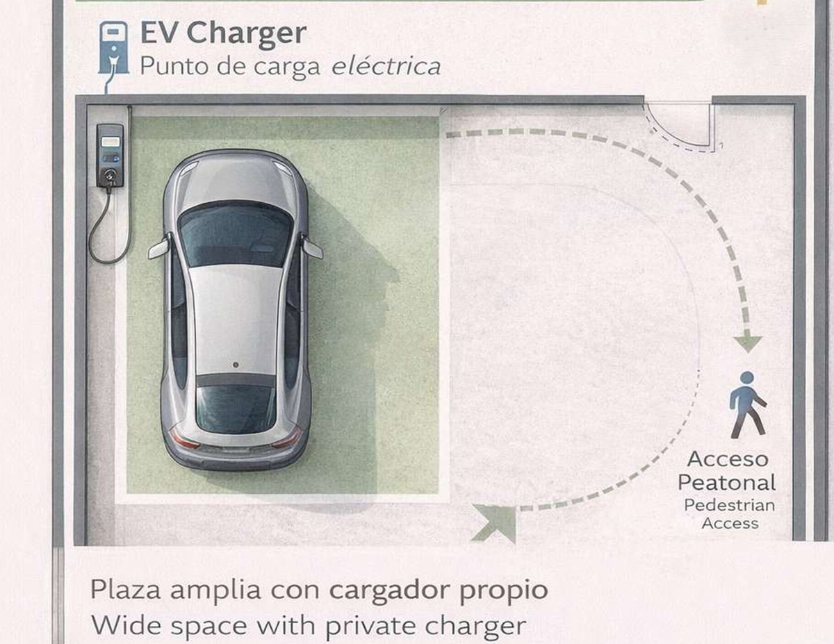 A private garage space is included in the price, with the possibility of electric vehicle charging.