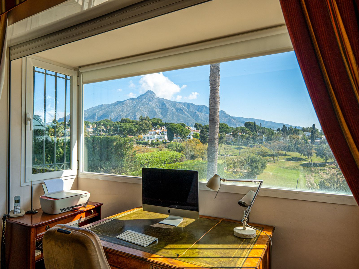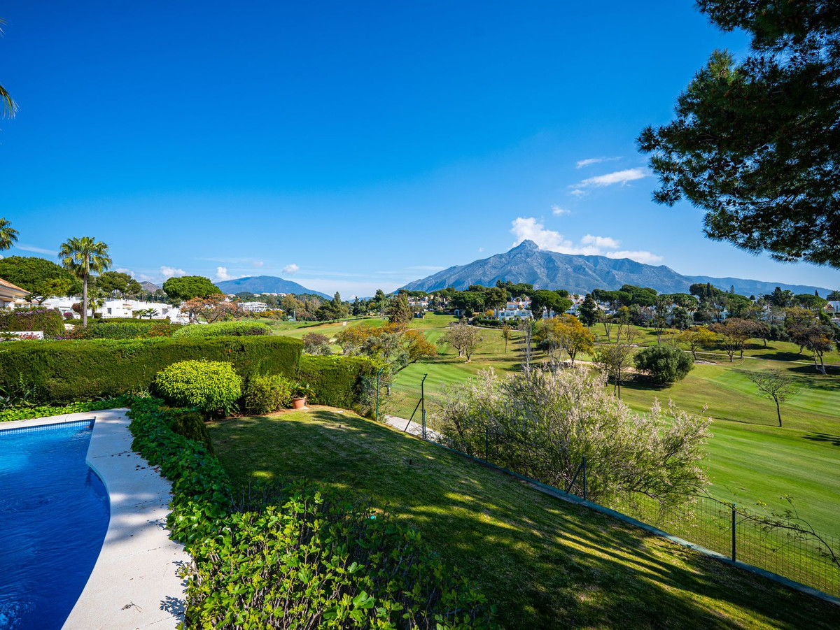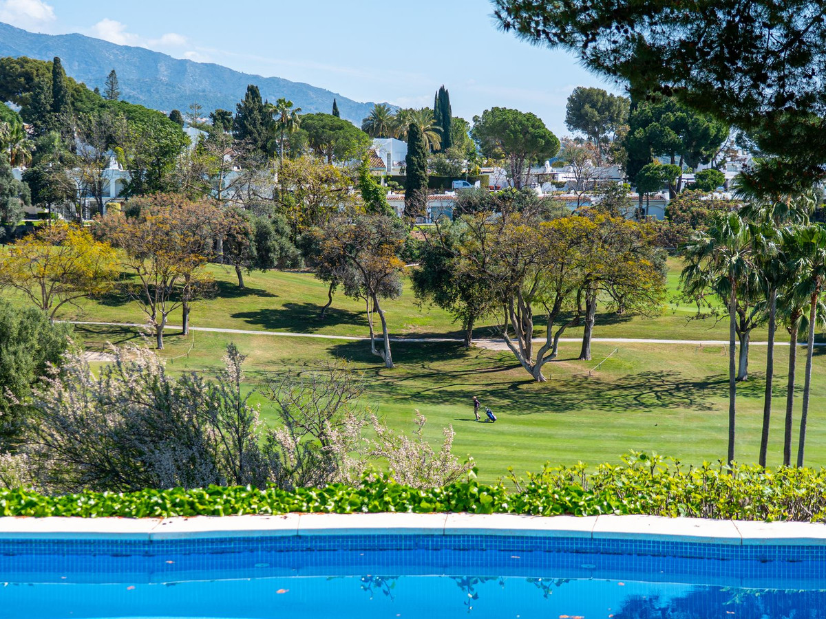 Introducing an exceptional Andalusian villa set in a prime frontline position overlooking Aloha Golf Club, where breathtaking panoramic views extend across the fairways to the iconic La Concha.