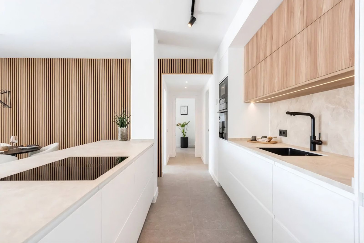 This stylishly renovated apartment features 3 bedrooms and 2 bathrooms, offering breathtaking views of the mountains and the Mediterranean Sea. Thanks to its open-plan layout, the TV area, dining room and fully fitted kitchen flow seamlessly together.