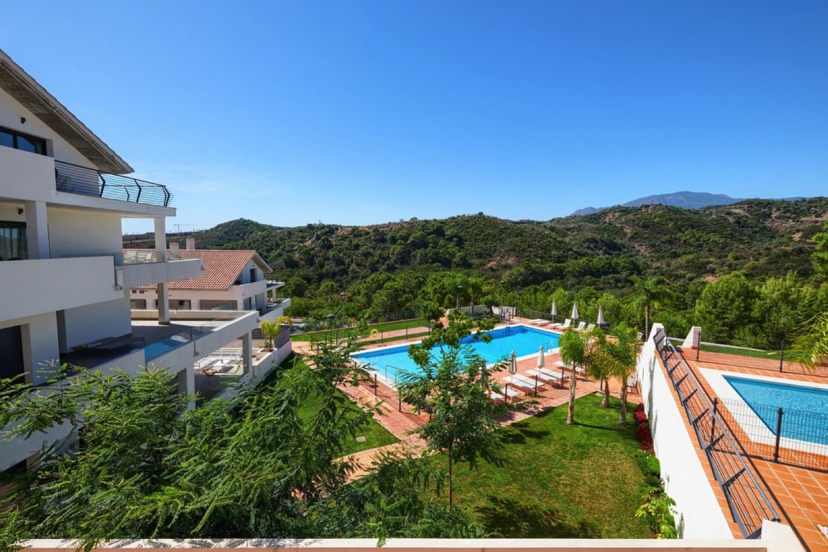 Discover this stunning apartment in the exclusive residential complex, nestled on the hills of Estepona. Enjoy absolute peace and privacy with breathtaking panoramic views over the lush green valley and the sparkling Mediterranean Sea.