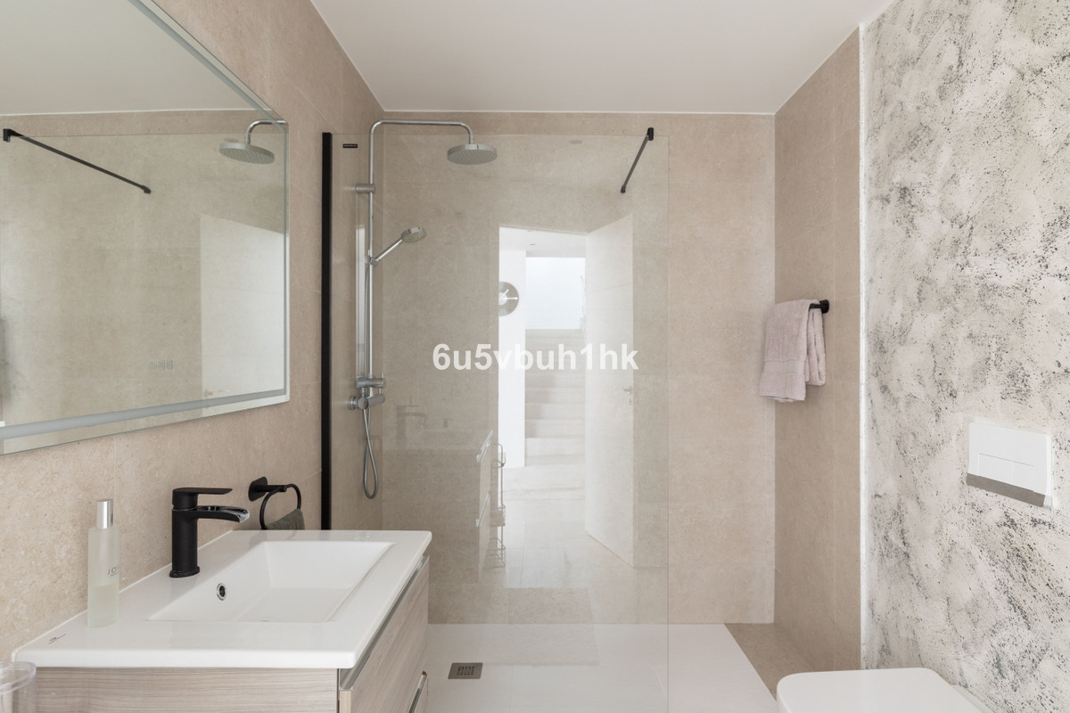 The lower level offers a rare feature for Spanish apartments — a large and welcoming hallway that enhances the feeling of a true home. Here you’ll find three bright and spacious bedrooms. The master bedroom has an en-suite shower room and direct access to a private enclosed patio — a versatile space perfect for a sauna, gym, or shaded relaxation area. The other two bedrooms also enjoy sea views and share a modern shower room.