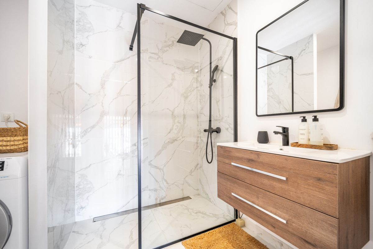 The penthouse features three generously sized bedrooms and two modern bathrooms, all recently renovated to reflect contemporary elegance. The interiors are adorned with wooden floors and glass doors, enhancing the sense of space and light throughout. Fully furnished to the highest standards, the property also offers the option for custom furniture to suit individual preferences. A private terrace and both covered and uncovered outdoor spaces provide ample opportunities to enjoy the Mediterranean climate.
