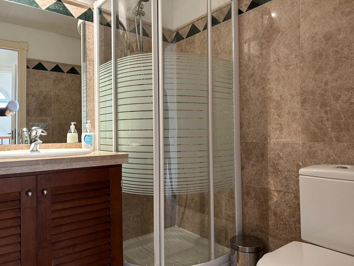 CASA ADOSADA IN FIRST LINEA DE GOLF, in SAN ROQUE CLUB, with PRIVATE JARDÍN and community PISCINA, orientation SW. This magnificent house has 3 DORMITORIES and 3 BANKS, Courtesy Astheus, living room with fireplace, and its own private garden as well as communal gardens and the large communal pool. It has a large kitchen with dining room and separate laundry room. With 70 square meters of private garden and a covered parking area in the back of the house. In addition to the beautiful PRIVATE JARDÍN it has a SOLARIUM with extraordinary views. It is a house with southwest facing views from the living room and with solarium and therefore a warm house in the winter months. It has air conditioning cold and heat, underfloor heating in the bathrooms and is fully furnished and equipped. marble floors and very bright.. . _ .
