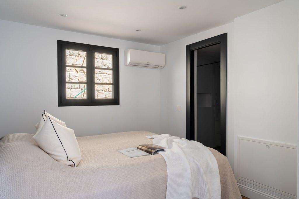 Throughout the home, the technical specifications and finishes have been carefully updated, including underfloor heating with a Daikin heat pump, individual air conditioning, wood-effect tiles, Villeroy & Boch bathrooms, Tres fittings and a Vela bathtub. The property also features double-glazed aluminium windows, a fully automated home and security system, and entirely renewed plumbing and electrical installations, all connected to mains services.