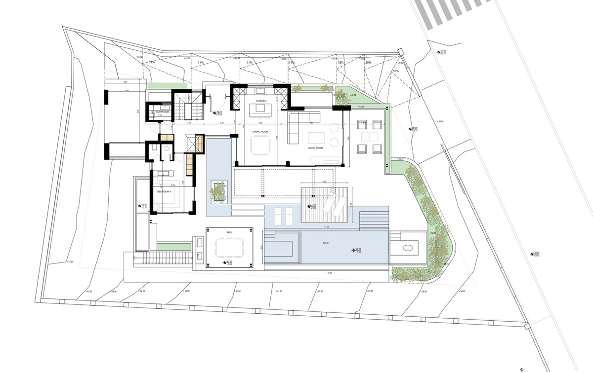 The outdoor areas are equally impressive, with a 300 square meter terrace featuring a pool, jacuzzi, stylish lounge, and barbecue area, ideal for relaxing under the sun or entertaining guests with the stunning backdrop of Marbella's iconic mountain, La Concha.