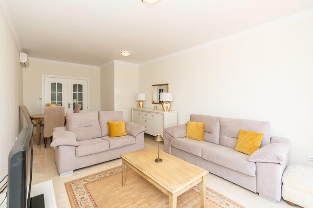 Beautiful apartment with sea views close to the beach in Elviria in East Marbella offering on one level two bedrooms, two bathrooms, a fully equipped kitchen with separate laundry room, bright and spacious living room and open very sunny terrace. The apartment is sold fully furnished and equipped with AC hot and cold, shutters in living room and bedrooms and marble floors throughout. Elevator into the basement with private parking space and storage room.