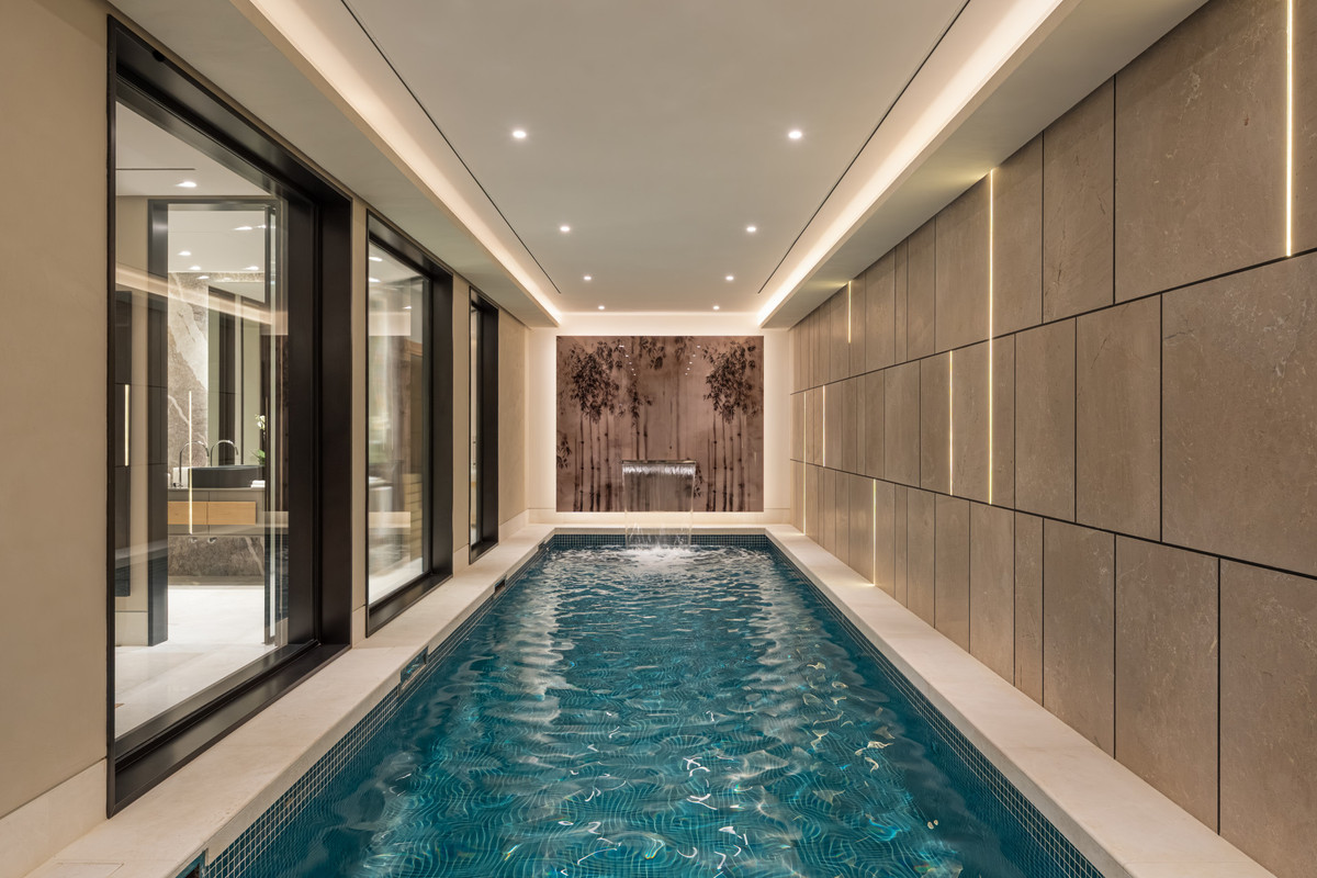 A calming neutral palette, enriched with natural materials such as wood and marble, enhances the sense of understated luxury, while meticulous attention to detail elevates every space. The open-plan living areas are thoughtfully designed to create a harmonious flow while maintaining defined zones for relaxation and entertainment. The living room invites comfort and tranquillity, complemented by curated artwork and bespoke finishes that add character and individuality.