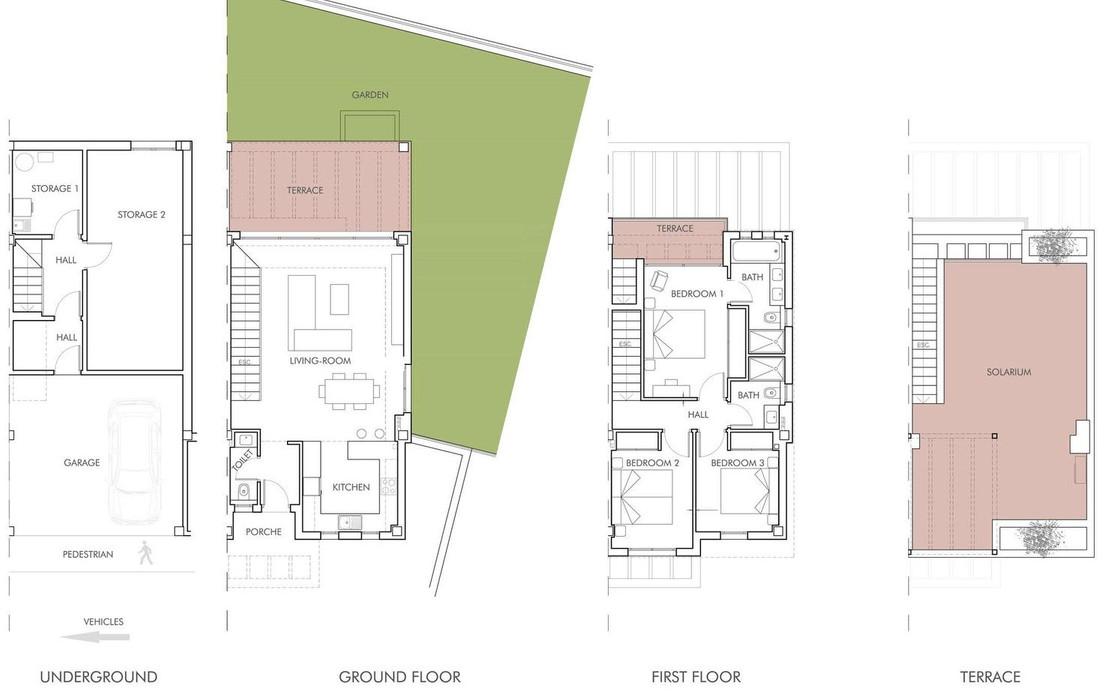 The main floor welcomes you with a sophisticated open-plan living and dining area, flooded with natural light and seamlessly connected to a generous 69 m² terrace and a private 90 m² garden—perfect for enjoying the Mediterranean lifestyle all year round.