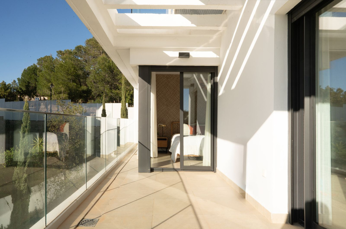 There are three comfortable bedrooms and three bathrooms, which gives a lot of flexibility whether you’re using it as a main residence or a second home. Upstairs, the private solarium really completes the property. It’s a space where you can fully enjoy the climate here, whether that’s relaxing during the day or having dinner in the evening with complete privacy.