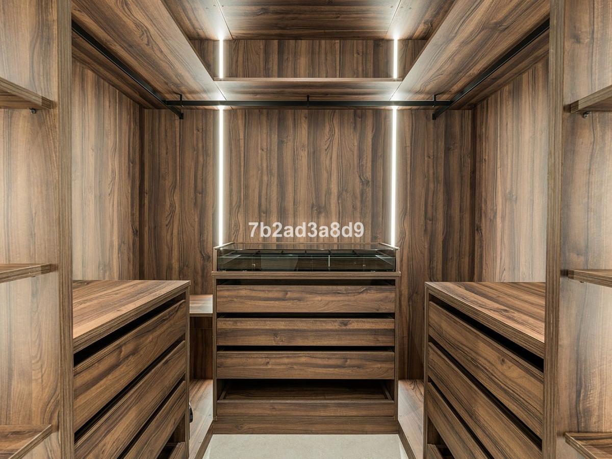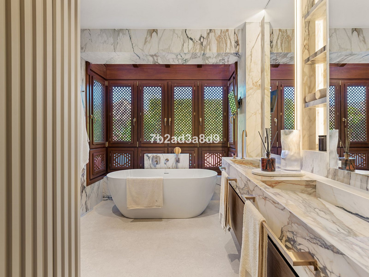 The primary suite is a sanctuary of its own, featuring a luxurious walk-in closet, a free-standing bathtub, and direct access to the upper terrace. Step outside to experience the pinnacle of outdoor living: a secluded sun terrace furnished with Kettal pieces, complete with a private sauna and Jacuzzi—ideal for relaxing after a day spent on nearby beaches or world-class golf courses.