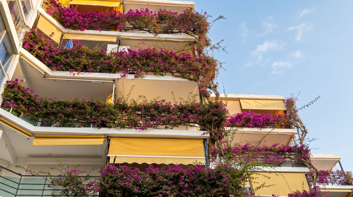 The apartment offers approximately 102 m² of living space and a sunny 14 m² terrace, perfect for enjoying the Mediterranean climate.