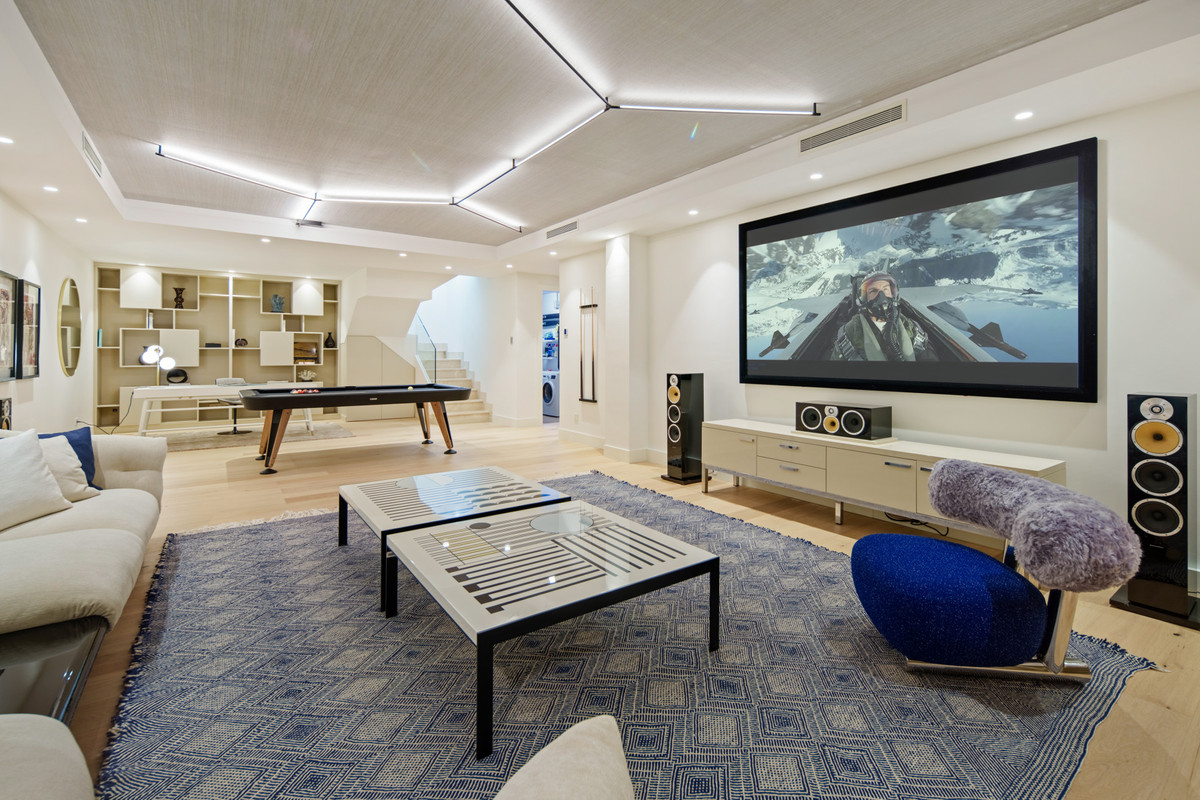 The interior palette is deliberate and unusually confident: deep burgundy, navy, soft blues, and warm natural tones layered through designer furnishings and curated artworks selected as part of Pedro Peña’s scheme. Nothing feels transient. Storage is properly considered, circulation is logical, and the proportions favour daily living over spectacle. Even the transition from garage to home is seamless: arrive, close the door, and the outside world recedes without ceremony. It raises a quiet question: should a luxury home impress visitors, or simply make its owners not want to leave?