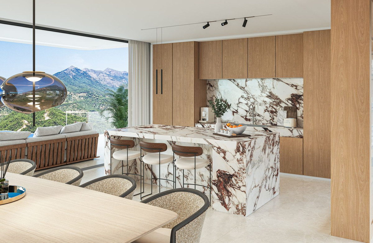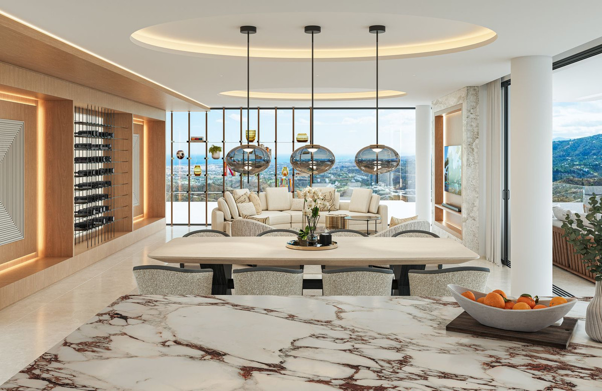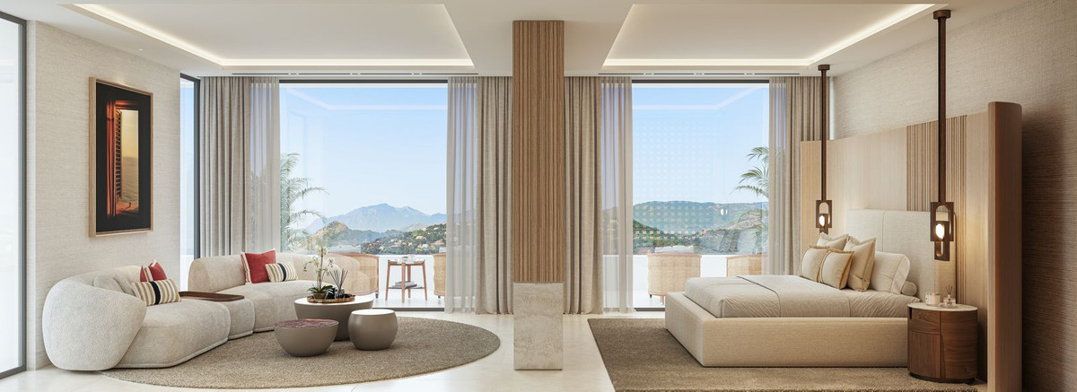 VILLA AURION enjoys an exceptional dual orientation to the west and south, offering a breathtaking panorama of both mountain and sea. From its elevated position, the villa captures sweeping views across the surrounding hills and the dramatic Sierra Bermeja mountain range, while overlooking the renowned La Zagaleta Country Club estate.