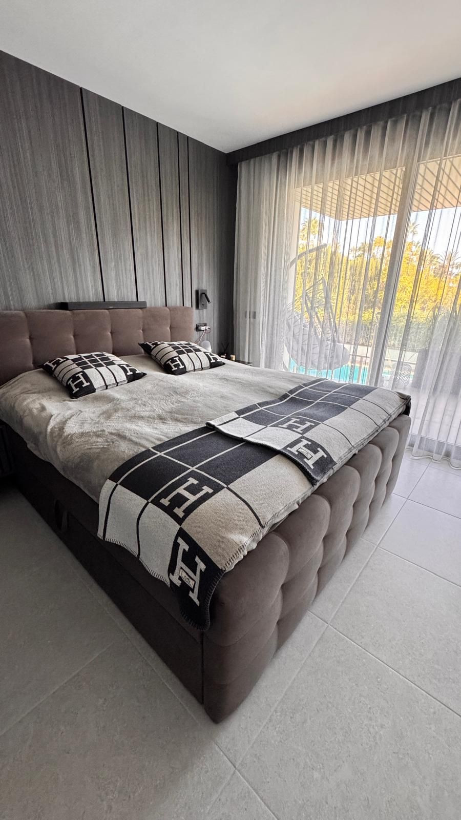 Two-bedroom apartment, fully furnished and equipped in a modern style, with furniture, appliances, and electronics. It's 250 meters from the sea and the promenade stretching all the way to Estepona. The modern building offers proximity to restaurants, a school, paddle tennis courts, Mercadona, and Lidl, all within a 300-500-meter radius. The nearest golf course, with a practice base and a driving range equipped with Trackman, is 6 km away - Atalaya Old and New Courses. A garage space with electric car charging and a storage unit is available. An outdoor swimming pool with sun loungers and a separate entrance is available. The only new, unique building in this area offers sea views, and all furniture, appliances, and accessories are included in the price. Intelligently controlled LED lighting, custom-made units, and completely updated bedroom and living room decor compared to the original build. The wardrobes, cabinets, and kitchen units have been modernized. A great base for exploring all the area's golf courses and attractions. Quiet and peaceful neighborhood
