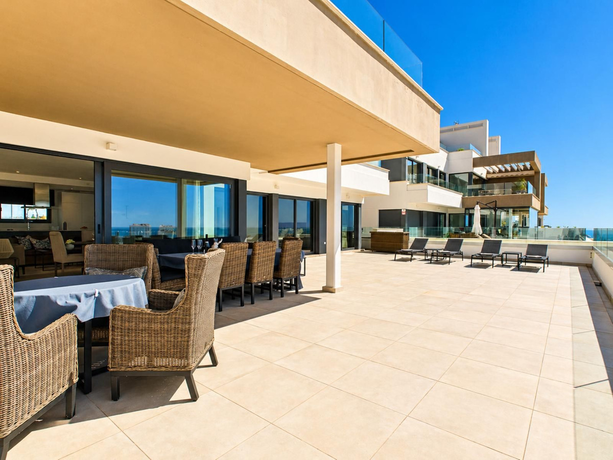 The generous terrace is ideal for both sunbathing and entertaining, with covered areas providing shade and comfort throughout the day. Completed just five years ago, the apartment showcases high-quality finishes and contemporary design, including a stylish open-plan kitchen that perfectly balances elegance and functionality.